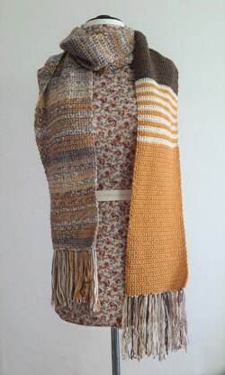 Named after the tonal yarn that makes up the main body of the scarf, this cosy beginner-friendly scarf features striped sections which complement the multi-toned main section.