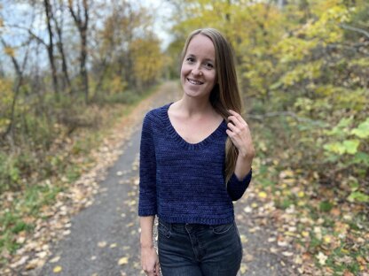 Materials: • 3.75 mm crochet hook • Approximately 855 (975, 1095, 1215, 1335)(1455, 1575, 1695, 1815) metres of DK weight yarn, sample done in Less Traveled Yarn DK • Yarn needle • 4 stitch markers
