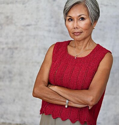 Creating an elegant garment can be almost effortless with the right pattern. The simple beauty of this polished sleeveless top springs from two variations of razor lace. The push and pull of yarn overs and double decreases create delicate peaks and valleys at the bottom trim. Worked flat in a single piece with a back seam and buttons at the back neck placket, you'll get all the pleasure of knitting lace with none of the stress of seaming it. The sole back seam goes together easily.