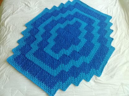 Drop a stone in a calm river and see the ripples working their way outwards. And so it is with this blanket - start in the middle and work your way out.