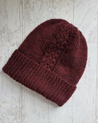 Construction: The Stoney Run hat is a beanie style hat with a cabled panel on the center-front. The hat is knit with a deep folded brim to keep you warm during the fall and winter months..