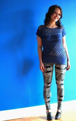 The Stoney Brook Top is bright, airy, comfy, and stylish. Slip it over a tiny tank top and this short sleeved sweater will keep you stylishly cozy when there is just a bit of chill. Or layer it over a long sleeve top when it’s just a bit cooler. It looks great with leggings and a bright tank top underneath. Made from Knit Picks, Diadem Fingering, (50% Baby Alpaca, 50% Mulberry Silk) it is super soft, and will feel luxuriant on your skin! This moderately oversized sweater is constructed in two sections: the short sleeves, front and back yokes are knit flat from cuff to cuff, then, once the underarms are seamed, the body is picked up from the yoke and worked in the round. The only seaming is the short underarm seams. The openwork is complemented by the wedge of garter stitch in the body and in the sleeves . And because the openwork pattern knits up longer than the corresponding garter stitch, the sweater takes on a sideways asymmetric profile.
