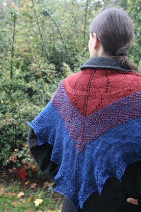 This shawl is inspired by Doctor Strange. The upper part was inspired by the way Marvel shows magik in it’s universe. The middle is an adaptation of the border on his cloak, but in colours I actually wear rather then yellow. The boarder with it’s gradient lace is designed to look like the stars that also make up his magik.