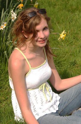 Lacy Summer Top worked in DK has contrast edges. This is a great kniited top with simple lace pattern that can be worn as an everyday top for Summer.