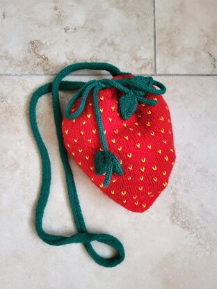The strawb satchel is an adorable fruit-shaped bag for foraging, gathering treasures and guarding small knitting projects. It should be approached with whimsy in mind. It requires both circular and flat knitting, duplicate stitch and i-cord.