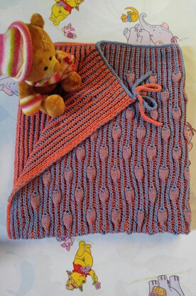 1. Needles:* A set of circular needles in US 7/4,5mm with one cord of 29-32” (80cm); * One cable needle (4,5mm) and tapestry needle for weave in ends; 2. Yarns: shown blanket is made with: * 1 2/3 balls M(ain)C(olor) DK weight cotton/acrylic yarn - blue, Alize cotton gold, 330m or 361yds /100g; In total MC ~548m or 600yds (166g); * 1 2/3 balls C(ontrast)C(olor) yarn - orange, Alize cotton gold, 330m or 361yds /100g; In total CC ~548m or 600yds (166g); 3. 2 stitch markers.