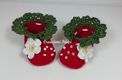 This is the pattern to crochet a pair of crochet strawberry shoes , the crochet pattern is in 4 sizes: