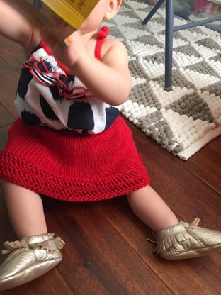 This has a simple knitted waist, so no sewing and an A-line skirt.