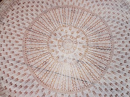 | One size only: | 4 x hanks version Radius: from centre to border-edge 122cm- Diameter: 244cm 3 x hanks version Radius: from centre to border-edge 102cm- Diameter: 204cm |