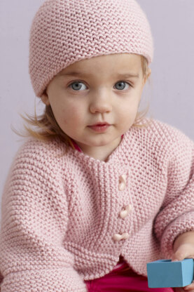 Strawberry Pink Sideways Cardigan and Hat in Lion Brand Superwash Merino Cashmere - L0043