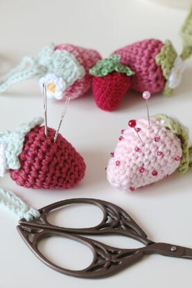 A cute little crafty helper… The best of both worlds, it’s pretty and useful. A juicy strawberry that looks good enough to eat, which can be attached to your scissors to help them stop going astray. Also doubles up as a very handy little needle keeper, so you’ll have all you need at the tip of your fingers.