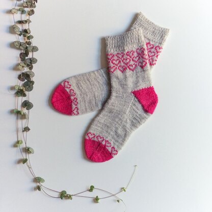 The “String of Hearts” socks are a sort of follow-up of the sLOVEnia socks that I designed for YuStitchKolektiv. Fellow knitters liked the idea of a simple heart colorwork chart so these are made with even more hearts but without much complications, and they are perfect quick knit for the upcoming winter season!