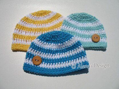 Includes PATTERNS for the Crochet Stripe Baby Hat in three sizes: