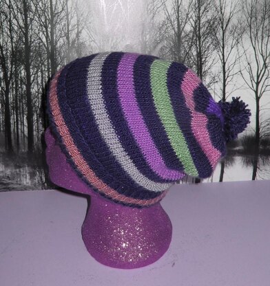 This is my Stripe Bobble Slouch hat knitting pattern.It is knitted on 4 mm needles in any dk yarn of your choice so is ideal for using up leftovers. The knitting pattern provides full details for 4 sizes XS, S, M & L so can be made for anyone from babies to adults with a head circumference between 16-24 inches. There are also full instructions with lots of photos to make the pom pom. Everyone allover the world is stripe, bobble and slouch crazy so now you can have all 3 at once.
