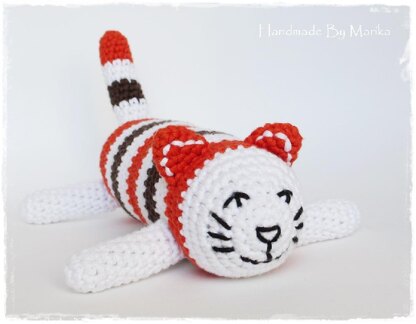 Finished cat is about 8" (20 cm) long if you use 3,5 mm (or 4 / E) crochet hook.