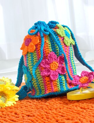 Striped Drawstring Tote in Bernat Handicrafter Cotton Solids