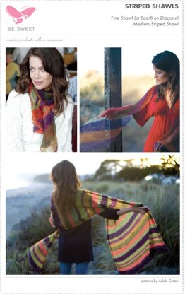 Striped Shawls in Be Sweet Extra Fine Mohair est un modèle de Tricot par Be Sweet, disponible au format PDF téléchargeable et comprend des instructions en Anglais. Super amusant à réaliser, ce modèle pourrait être votre prochaine œuvre d'art !