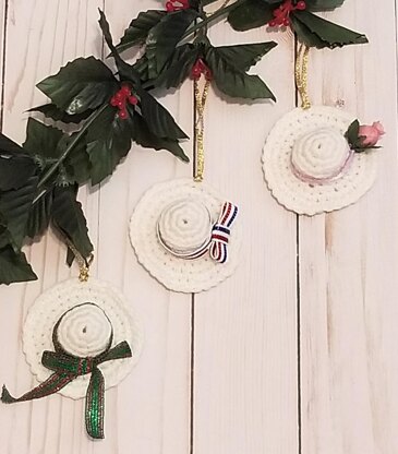 Celebrate the 100th anniversary of the 19th Amendment by crocheting a few lovely suffragette hat ornaments. Hang them on the tree or liven up your gift wrapping. Finished size is approximately 3" diameter. Each ornament takes about 12 yards of sport or baby yarn, so they're a great stash buster or bazaar item.