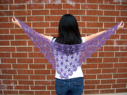 Worked from point-to-point, Sumire's Shawl uses the most of a skein of lace yarn. This shawl takes the concepts from [Geoui][1] and adds some complexity, creating a lovely shawl that is delicate and beautiful. The shawl is named after the flowery patterns in the body and motifs; “sumire” means violet in Japanese.