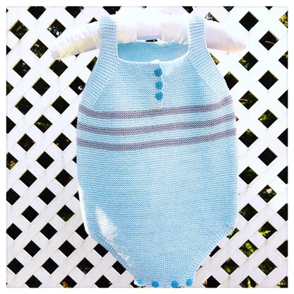 If you are looking for a contemporary and easy garment to knit, you will love the Summer baby romper! It’s a lovely outfit for warm weather, and when autumn arrives you can add a shirt underneath. It is knitted in Garter stitch, front and back pieces, bottom-up, and it fastens with buttons on the front part of the chest and in the crotch area. It has a striped motif as decoration that you can knit in endless color combinations.