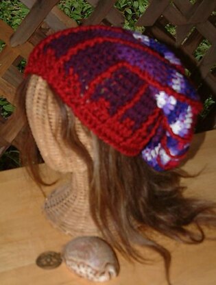 This SUMMER BERRIES cap uses various shades of purples and reds, in both solids and variegated yarns. (Obviously, you are free to use any color combo you'd prefer.) The total weight needed is about 5 ounces either from your stash of left-over yarns or purchased new.