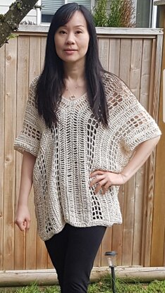 Carefree, casual crochet top that's perfect for Summer! Designed using Cotton Yarn this top is very easy to make and versatile. All in one-piece, with seams along the sides. Eyelet rows makes for a trendy look to show some skin! Perfect to wear over tank tops, dresses or fitted tops as a layering piece.