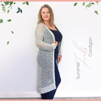 The Summer Feels Cardigan is absolutely gorgeous! The perfect light weight cardy for those Summer days when you just want something to wrap yourself up in. This cardigan features a simple but effective stitch pattern that falls beautifully creating a flattering style on all body shapes. Designed in just three pieces (body & sleeves) this pastern features minimal seams and sewing and is perfect for advanced beginners.