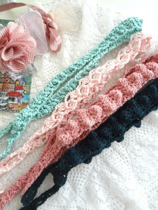 There are 3 headband patterns included for a bobble, ladder and crown headband.