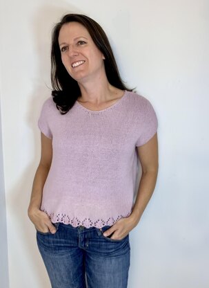Knit this great summer top out of Bernat’s Softee Baby Cotton yarn. A knit top that has some shoulder coverage and a nice lace detail at the bottom edge. This versatile wearing top is worked from the bottom up. Pattern includes a link to a Youtube video showing from cast on to bind off; along with step by step how to do the decorative pattern, wrapped short rows, the method used for the sloped shoulders, and more information about the sweater construction.
