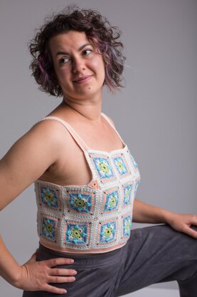 Colorful crochet crop top pattern “SUMMER LIFE” includes: