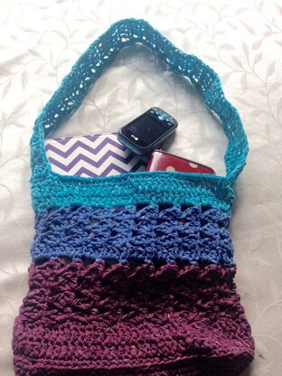 The second I saw Stylecraft's Mystique yarn, I knew that the polyester/viscose blend tape yarn would make a fabulous bag. My Summer Wave bag is designed for the beach or poolside, with enough room for your latest read or Kindle, plus the essentials of phone, purse and suntan lotion.