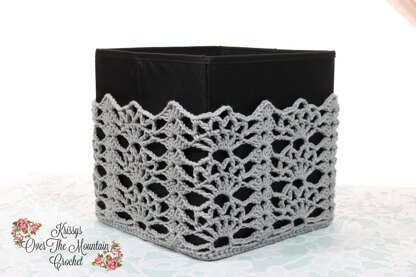 Hello, welcome to KrissysOTMCrochet, or Krissys Over The Mountain Crochet. Let's beautify your storage space. I know adding lace to a collapsible cube would be something yarn lovers would enjoy doing. After all, don't most of us have skeins of yarn neatly placed in storage bins? This pattern is easy to read with charts to help you along.