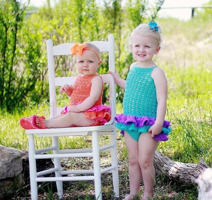 I first tried two ruffles in the front and three at the back, but after testing them on models, decided to go with three continuous ruffles on front and back. This was one of the most tedious patterns I have ever designed. There was so much testing and retesting involved before I came up with the final sizing, it was exhausting. The final product turned out adorable, so I am glad my efforts didn't go wasted. I hope you love the pattern as much as I do.