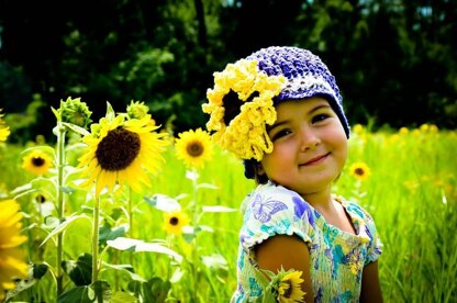 This is a PDF crochet pattern for a great sunflower beanie in five sizes. The sunflower can be made in 3 sizes and the pattern also includes two sizes for a leaf.
