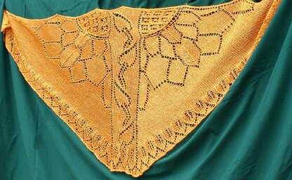 This triangular shawl was inspired by fields of sunflowers. It is a charted and written lace design, with lace knitting on every other row. It can be knit in any weight of yarn.