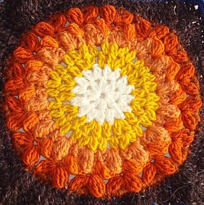 I love sunflower patterns and this textured version is one of my favorites. Fun to construct with an easy, rhythmic center and puffy cluster stitches.