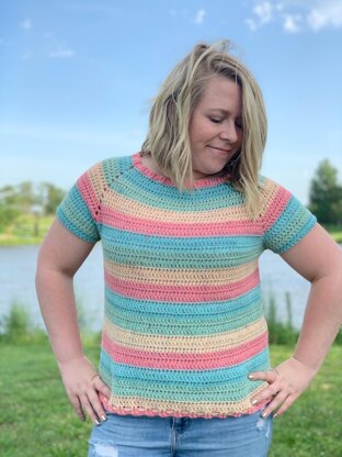 Looking for a beginner friendly, seamless sweater? The Sunny Raglan Tee will fit the bill!
