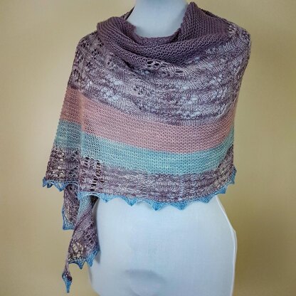 This knitting pattern creates a top-down crescent-shaped shawl, gradually expanding as you knit. We rapidly increase in Section 1, with 6 stitches every 2 rows, then four stitches added every two rows through the rest of the shawl, creating wings that gracefully extend, forming a beautifully curved shape. The result is a classic crescent shawl with an elegant drape and a signature curled edge.
