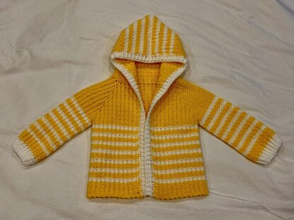 A bright baby hoodie using a stitch pattern which gives a thick, textured luxury feel perfect to keep little ones warm and cosy. This stripey hoodie is made in top-down raglan style. The pattern can easily be adjusted to add length to the body, sleeves and hood for a perfect fit and there is very little sewing to do. You can also leave out the stripe pattern and work the hoodie as a solid colour. Enjoy!