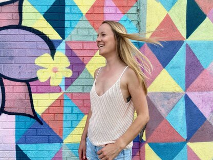 This light fingering weight tank is worked on a 45 degree angle (Yup! That’s how the stripes are like that)! The entire body is worked, then seamed together, and then the straps and trim are added to pull the full piece together!