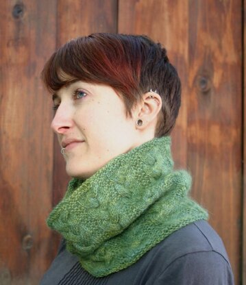 This close fitting cowl is the perfect project for amazingly soft yarns. The cable pattern provides structure, so the cowl stands up and keeps your neck cozy and warm.
