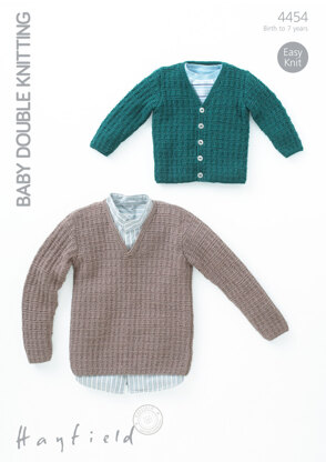 Sweater and Cardigan in Hayfield Baby DK - 4454 - Downloadable PDF est un modèle de Tricot par Hayfield, disponible au format PDF téléchargeable et comprend des instructions en Anglais. Super amusant à réaliser, ce modèle pourrait être votre prochaine œuvre d'art !