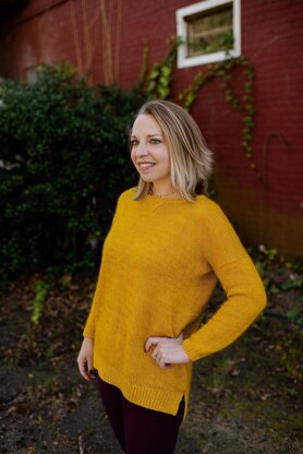 Casual and oversized, just like your favorite sweatshirt. The silhouette and neckline detail provide effortless style and comfort along with an easy fit. Sweater is worked from the top down with drop-shoulder seamless sleeves. Front and back hem are split at the sides and worked separately for a little extra length on the back. Pattern is suitable for adventurous beginning knitters ready to try some new techniques. Shown in Size M with 11"/28 cm positive ease. Design is intended to be worn with 10-15"/25-38 cm positive ease and is also available in children's sizes ([pattern sold separately][1]).