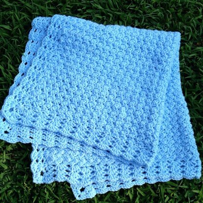 This classic baby blanket is crocheted side to side for the body and then the border is picked up and crocheted around. The size is adjustable and can be made larger or smaller very easily!
