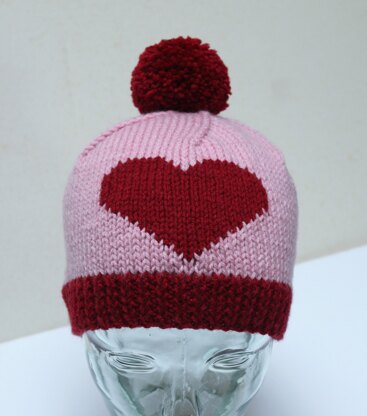 This hat has 6 sizes, so you can whip it out for virtually anyone, from your niece's baby to your coworker's grandfather. It's knitted back and forth on straight needles, which makes that cute intarsia heart on the front doable. Decreases at the top shape the crown, so the hat doesn't dangle off the top of the lucky recipient's head. Finishing is no big deal: mattress seam down the back, weave in the ends and you're good to go. If you have time to spare, add a nice fluffy pompom, which amps up the adorbs factor and hides any wonky looking stitches at the top.