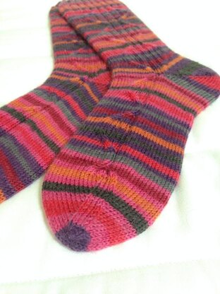 I'm always wondering what socks to knit with self-striping or variegated yarns. You know, the yarn we all love because we can let it do all the work while we knit vanilla socks. Except vanilla socks get boring. So! I thought I’d add a little action down each side while maintaining those flat plains of color where variegated yarns really shine. Sweet Onions features an interesting ribbed cable pattern that's exciting to knit while producing a wonderful stretchy fit.