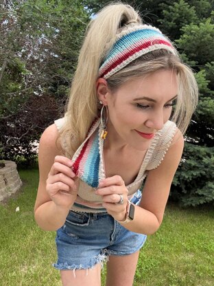 The Sweet Paulette Headband is the perfect matching accessory to the retro-inspired Sweet Paulette Top (releasing mid-August 2023). This headband can be knit in a solid yarn or with stripes. It is a perfect scrappy project and so cute!