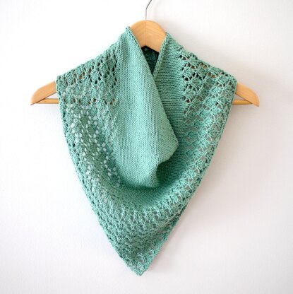 SWEET PEA features breezy openwork lace dancing along the sides of this light and airy springtime cowl. The cotton content in CotLin yarn lends itself to springtime temps, and the muted sage green shade radiates serenity. Triangular in shape, the lace pattern creates the perfect balance between intricate detail and simple stockinette. Sweet Pea is knit flat, ends are then seamed.