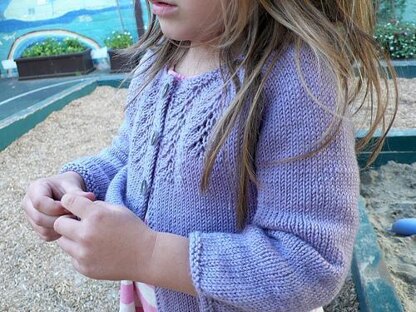 A smaller, sweeter version of the adult Peasy. A top down raglan cardigan, with 3/4 sleeves. Worked in one piece from the top down in stocking stitch except for the front panel which is worked in Vine Lace stitch pattern and the trim worked in garter stitch. Suitable for an adventurous beginner. The finished cardigan is shown in Louet Gems Sportweight, colour 80-2093-2. Amendment for instructions on page 2. The last row should be corrected for size 7-8 as follows: Next row (WS): k to first marker, rm, p to 3 (5, '7', 1, 2) st before raglan marker, pm, p to 3 (5, '7', 1, 2) st after last raglan marker, pm, p to last marker, rm, k to end.