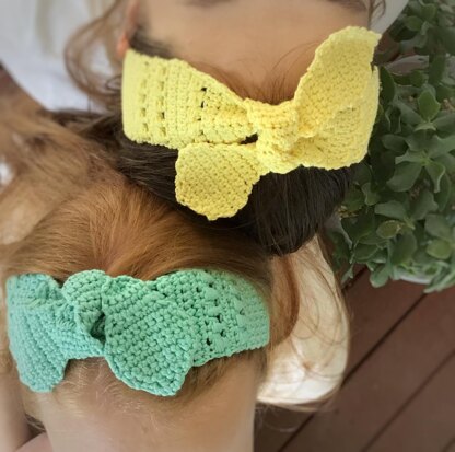 The Sweet Summer Headband is made from a light cotton, superfine or fingering weight yarn.